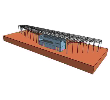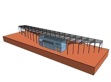 A production and warehouse building with an office and social part. The hall was designed as a steel structure. Brick walls made of blocks.