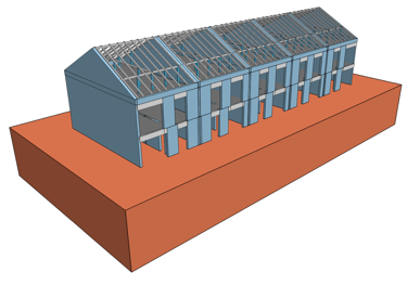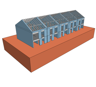 Single-family terraced residential buildings. The walls, except for the border walls, are made of layered aerated concrete blocks.