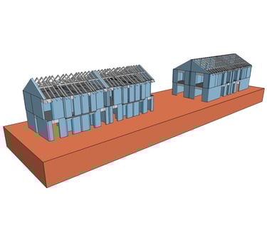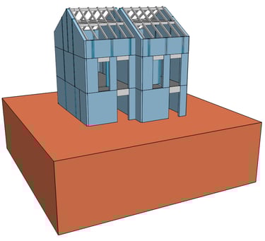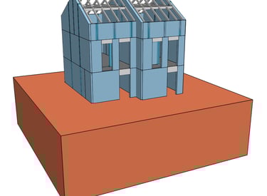 Complex of single-family residential buildings. The ceilings were designed as monolithic reinforced concrete. The walls were designed as partly reinforced concrete and mensory.