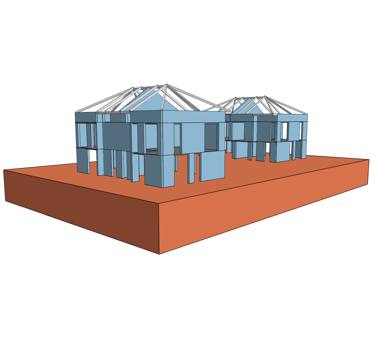 Two semi-detached multi-family residential buildings. Two above-ground floors. The ceilings were designed in the Teriva I system. The walls were made of ceramic blocks.